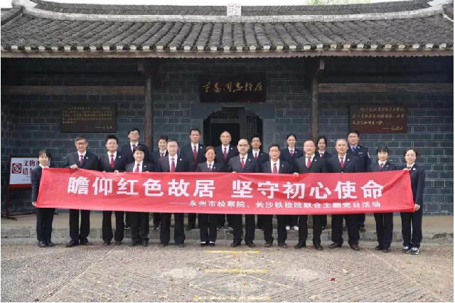 近日,长沙铁路运输检察院第一党支部联合永州市检察院第一党支部共同开展“用红色精神厚植为民情怀”主题党日活动,前往永州市李达故居、陶铸生平事迹陈列馆等红色教育基地,进一步锻造党员信仰坚定、对党忠诚、廉洁自律、全心为民品格,强化业务过硬、责任过硬、纪律过硬、作风过硬素质,促进党的二十大精神、全国两会精神在检察业务实践中深入落实。