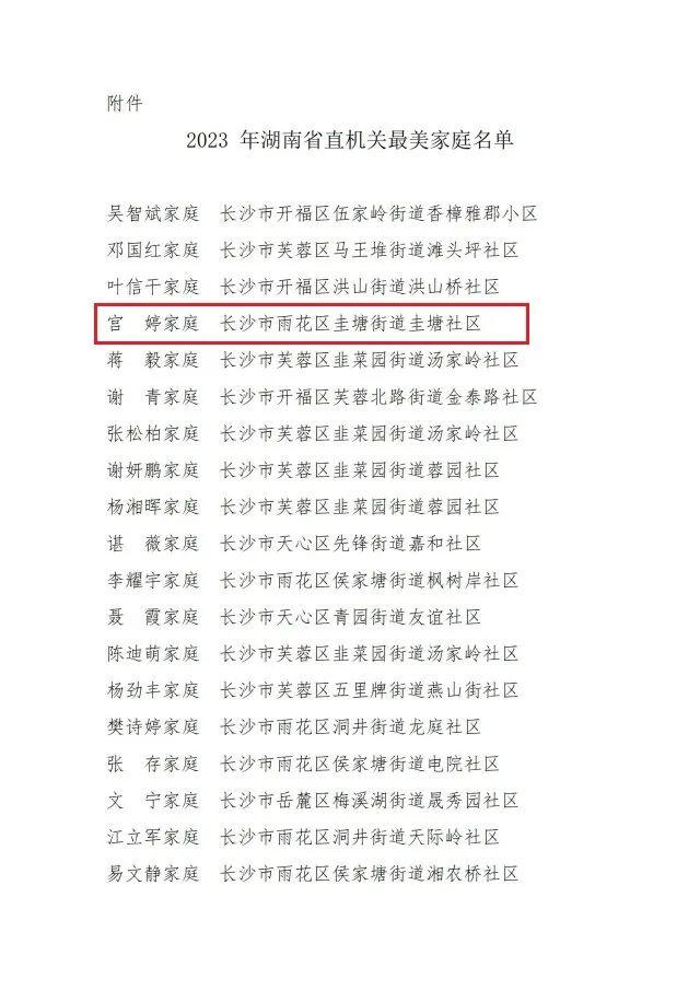 7月28日,“省直家教·清风齐家”2023年度省直机关家庭家教家风活动在长沙举行。活动公布了2023年湖南省直机关最美家庭名单,长沙铁路运输检察院四级高级检察官宫婷家庭成功获选最美家庭。