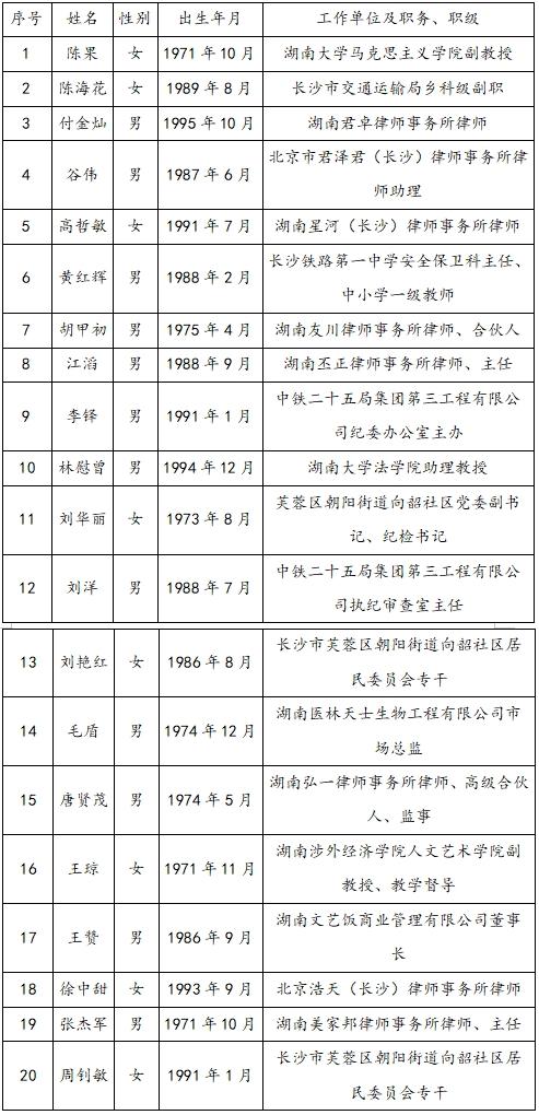 长沙铁路运输检察院听证员拟聘人选名单